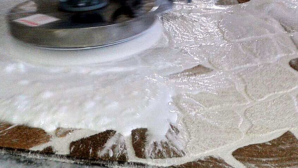 Şampuan uygulanan halılar makinanın fırçası ile ön ve arka yüzünden fırçalanarak derinlemesine temizlenir.